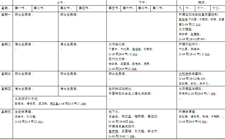 北京师范大学水科学研究院2016-2017学年第一学期课程表